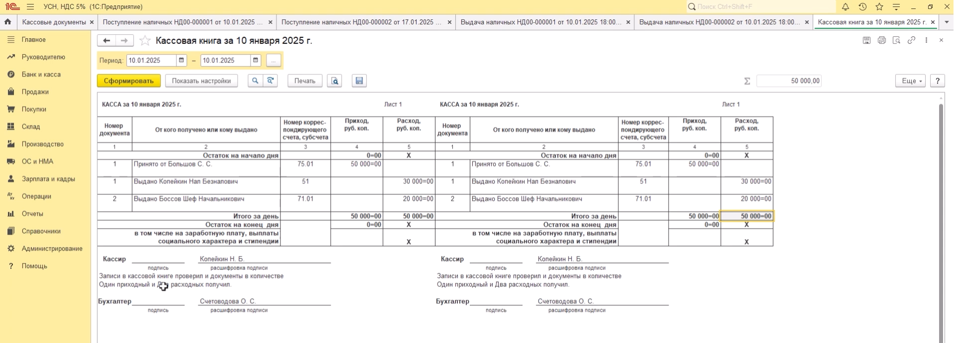• Настраивать учётную политику под УСН;